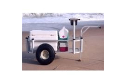 Fishing cart holds up to 5 rods, has a fish/bait cutting board and plenty of space for your chairs, cooler, and cast net.